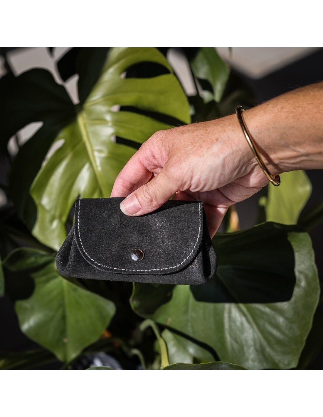 Réalisé en cuir pailleté, il capte la lumière tout en conservant un style élégant et intemporel. Un véritable favori de nos clientes !