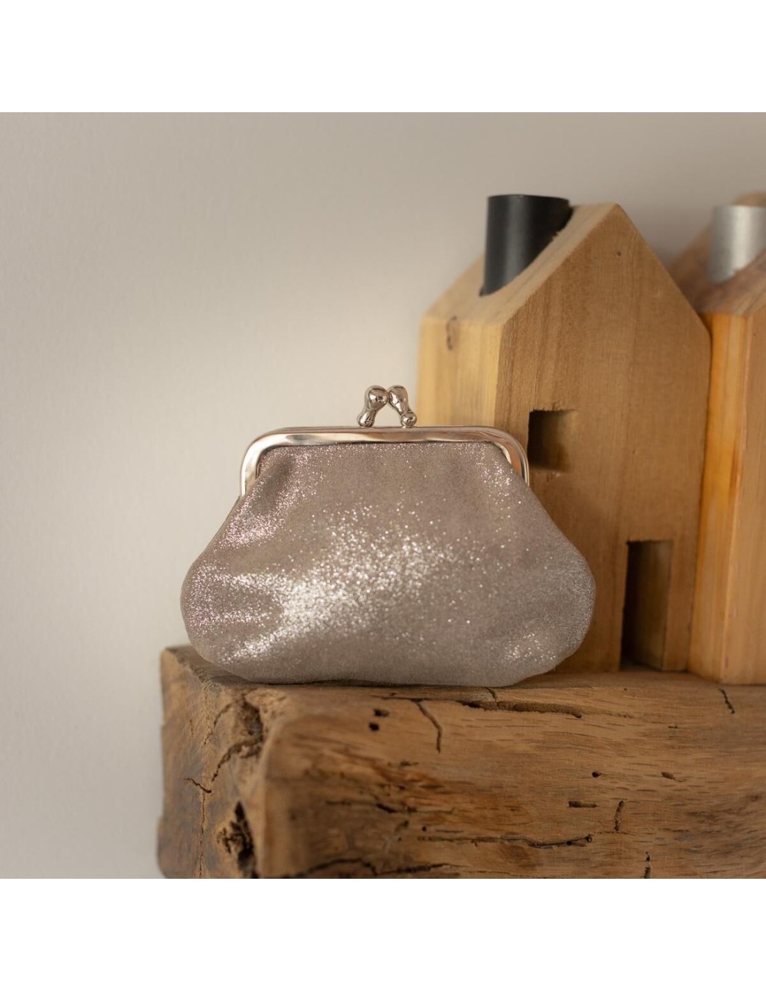 Porte-monnaie Reine en cuir Pailleté Gris Bastille