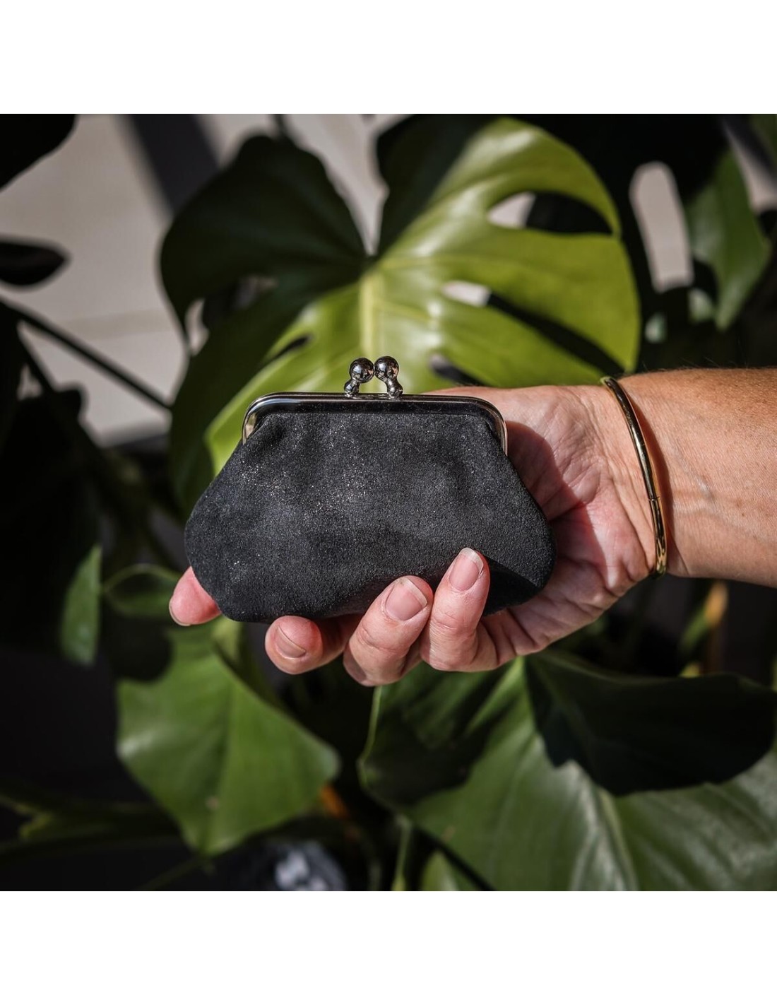 Compact, il se glisse facilement dans une poche ou une pochette et accueille pièces et billets avec élégance. Réalisé en cuir pailleté ou mixte, il allie brillance et authenticité.
