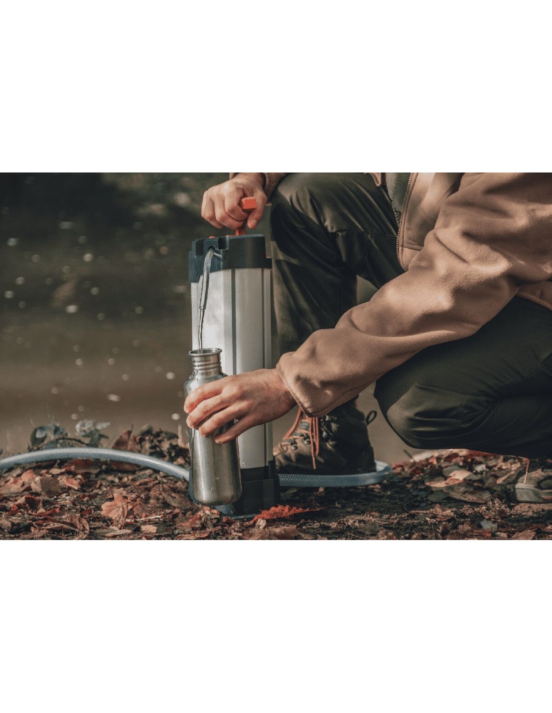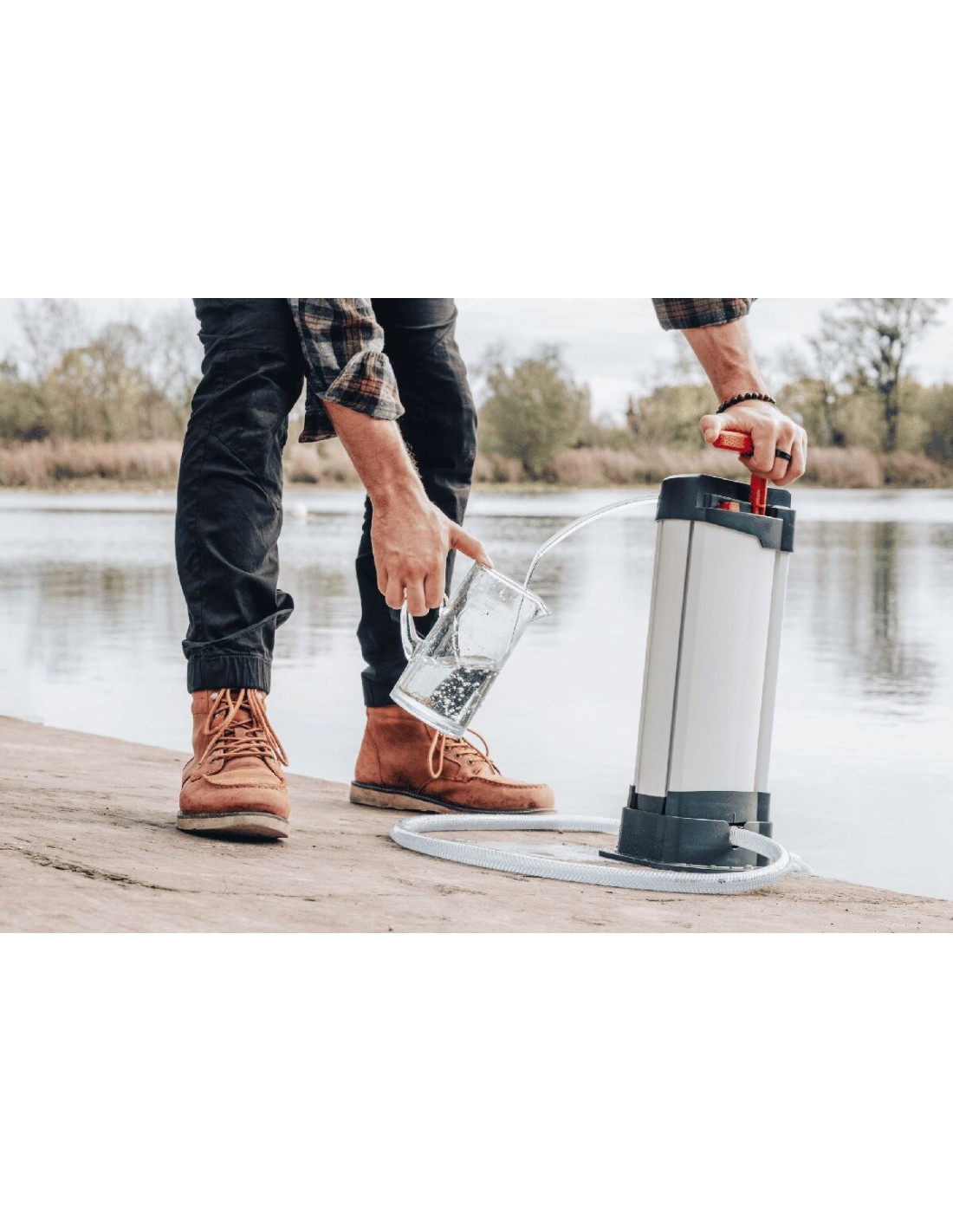 La préfiltration déportée permet de capter de l’eau sans immerger le purificateur. L’aspiration peut se faire depuis différentes sources : étendue, source difficile d’accès, réservoir…