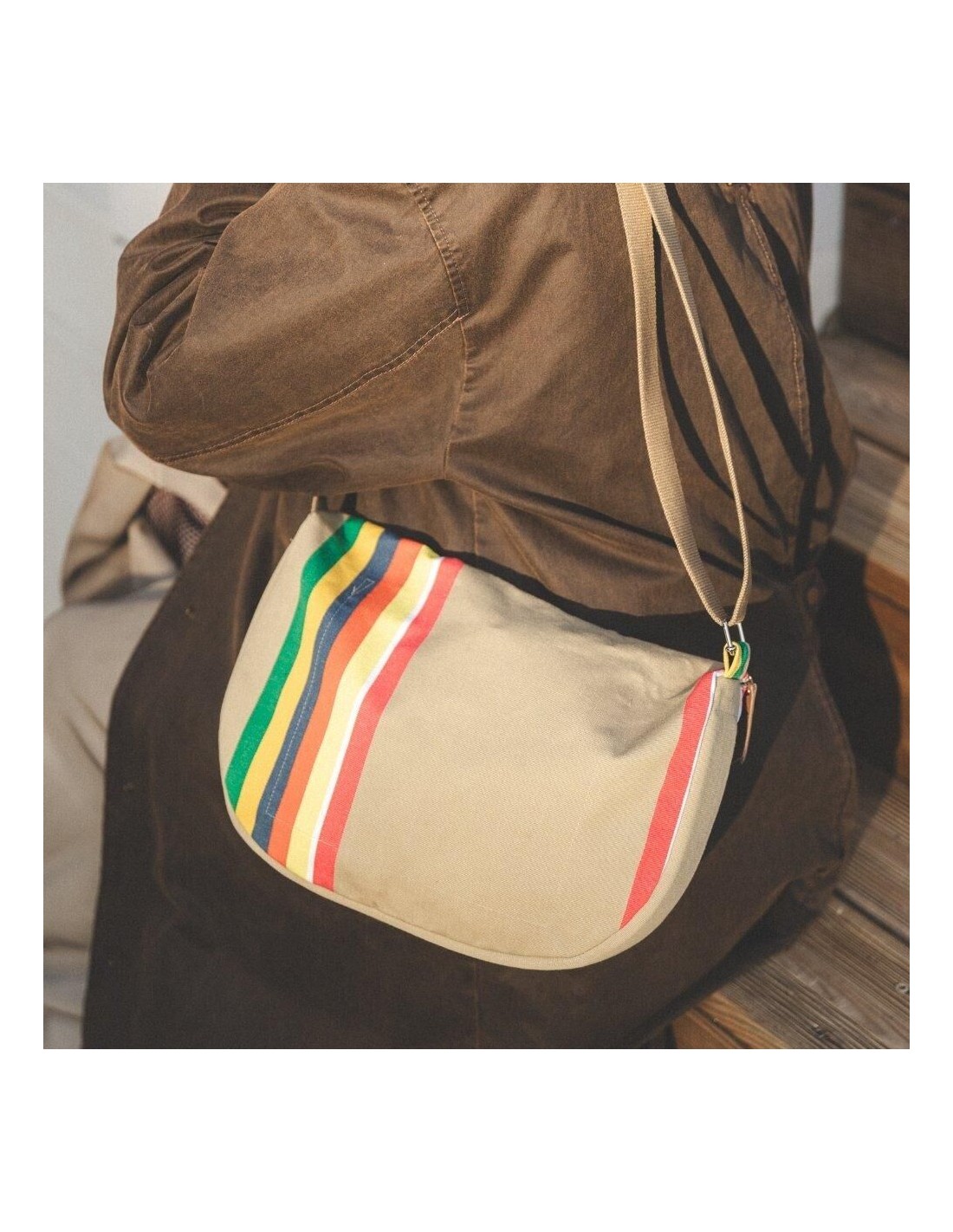 Le sac Bertille est en toile transat 100% coton, à dominante rayé;
