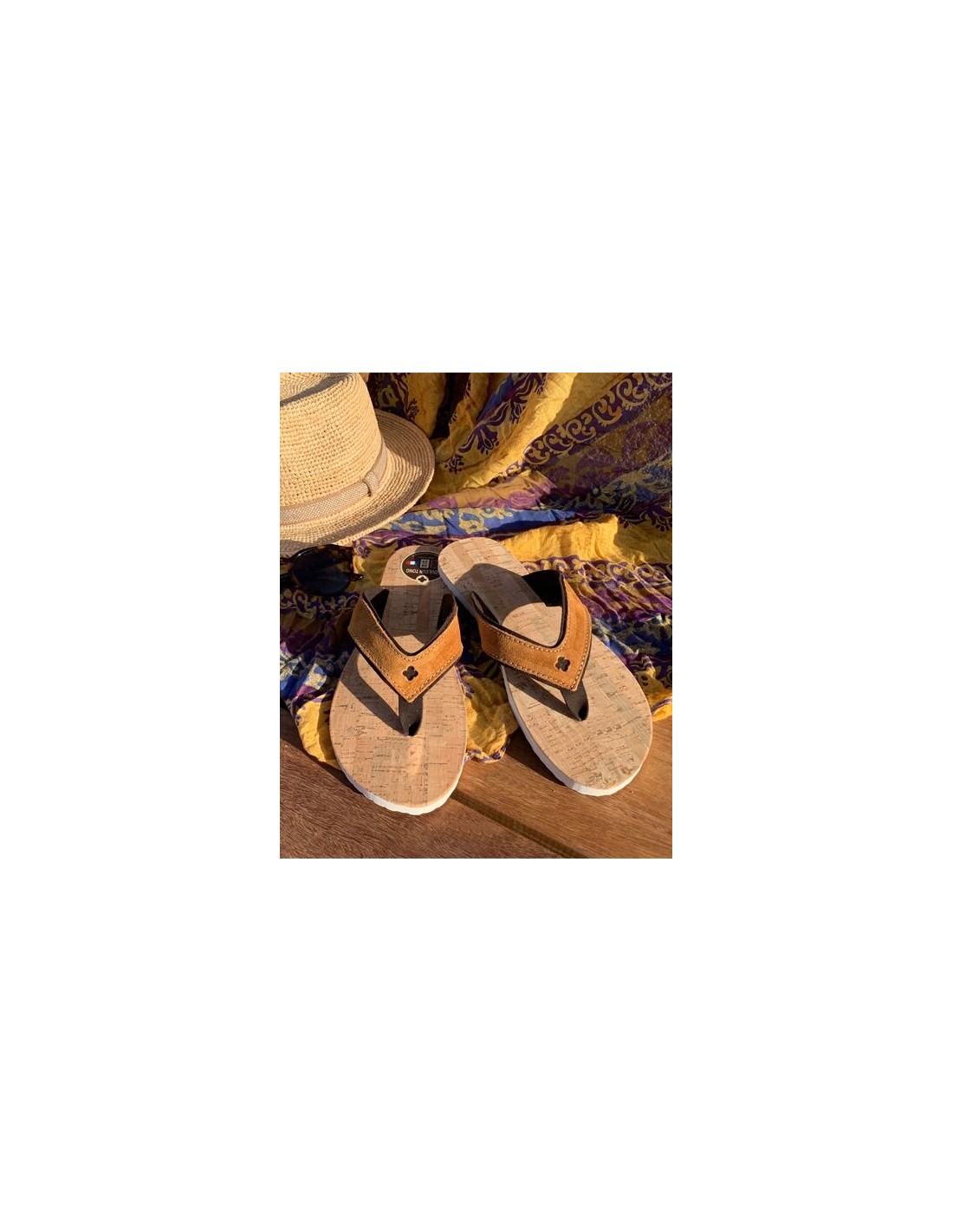 Semelle de dessus en liège naturel. Brides en cuir velours Sable. Grâce à sa bride large, ce modèle permet un très bon maintien du pied. L’entre-doigt en microfibre est particulièrement confortable. Le liège est confortable, léger, résistant à l’eau et hypoallérgénique. Doublure dessus en micro-fibre. Semelle en EVA expansé épaisseur 11mm. Disponible du 34/35 au 46/47.