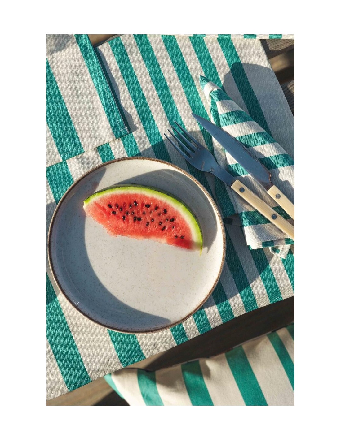 Set de Table Adour Enduit – Un air de Riviera à votre table Format idéal : 47 x 35 cm, parfait pour habiller et protéger votre table Toile 100 % coton bio enduite : imperméable et facile à nettoyer Inspiré de la Riviera italienne : rayures