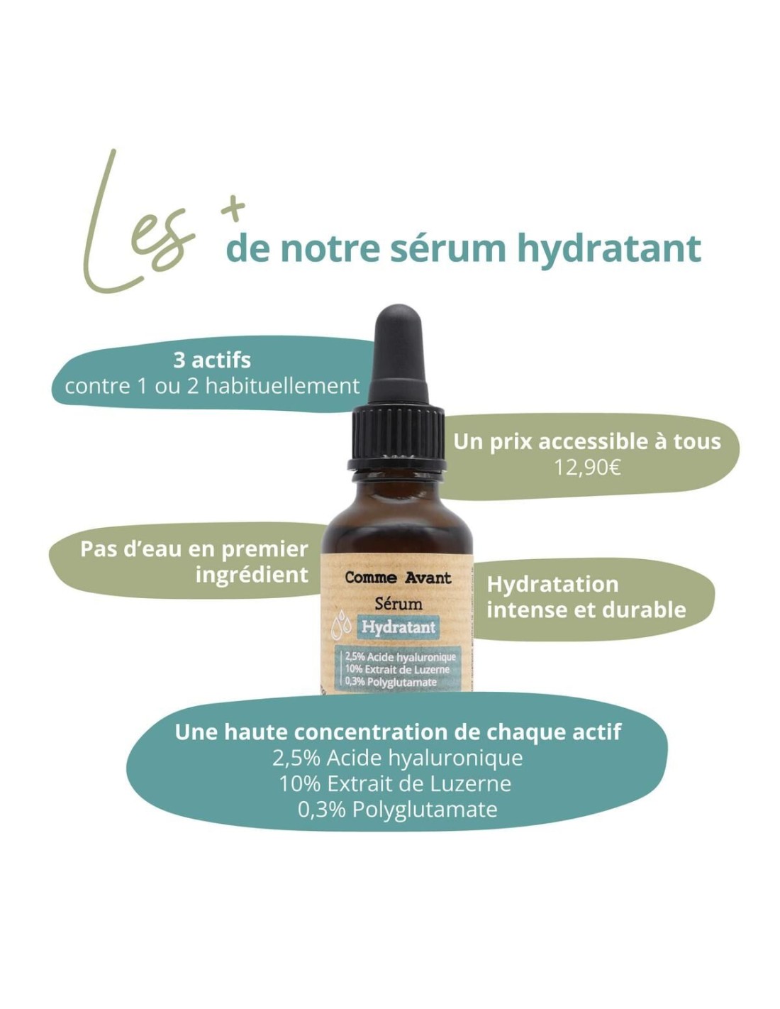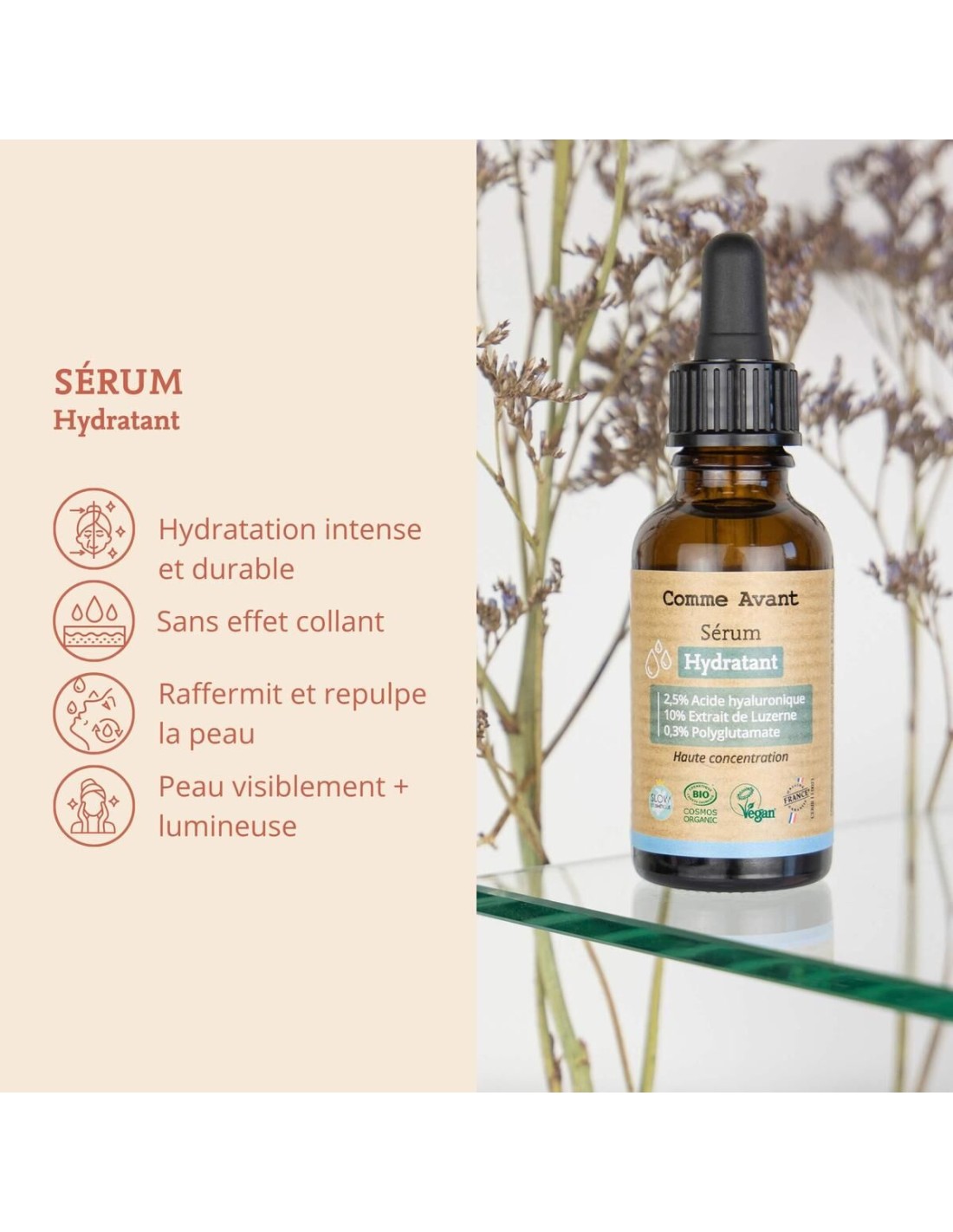 Sérum hydratant bio naturel acide hyaluronique luzerne polyglutamate