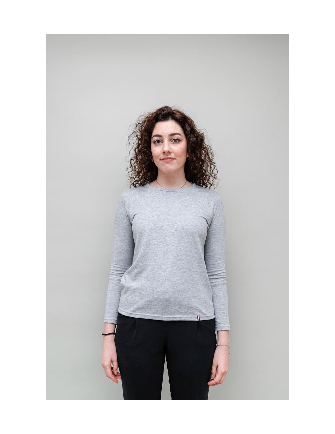 T-shirt pour femme à col rond et manches longues, ce modele marie élégamment un style classique et une durabilité exceptionnelle.