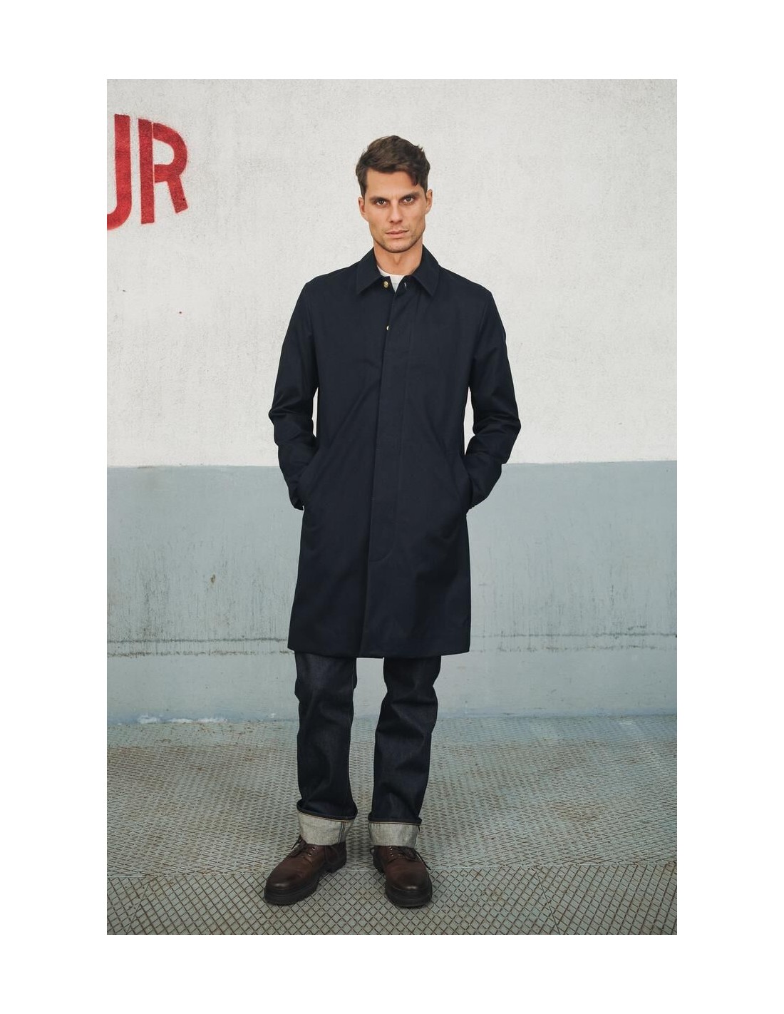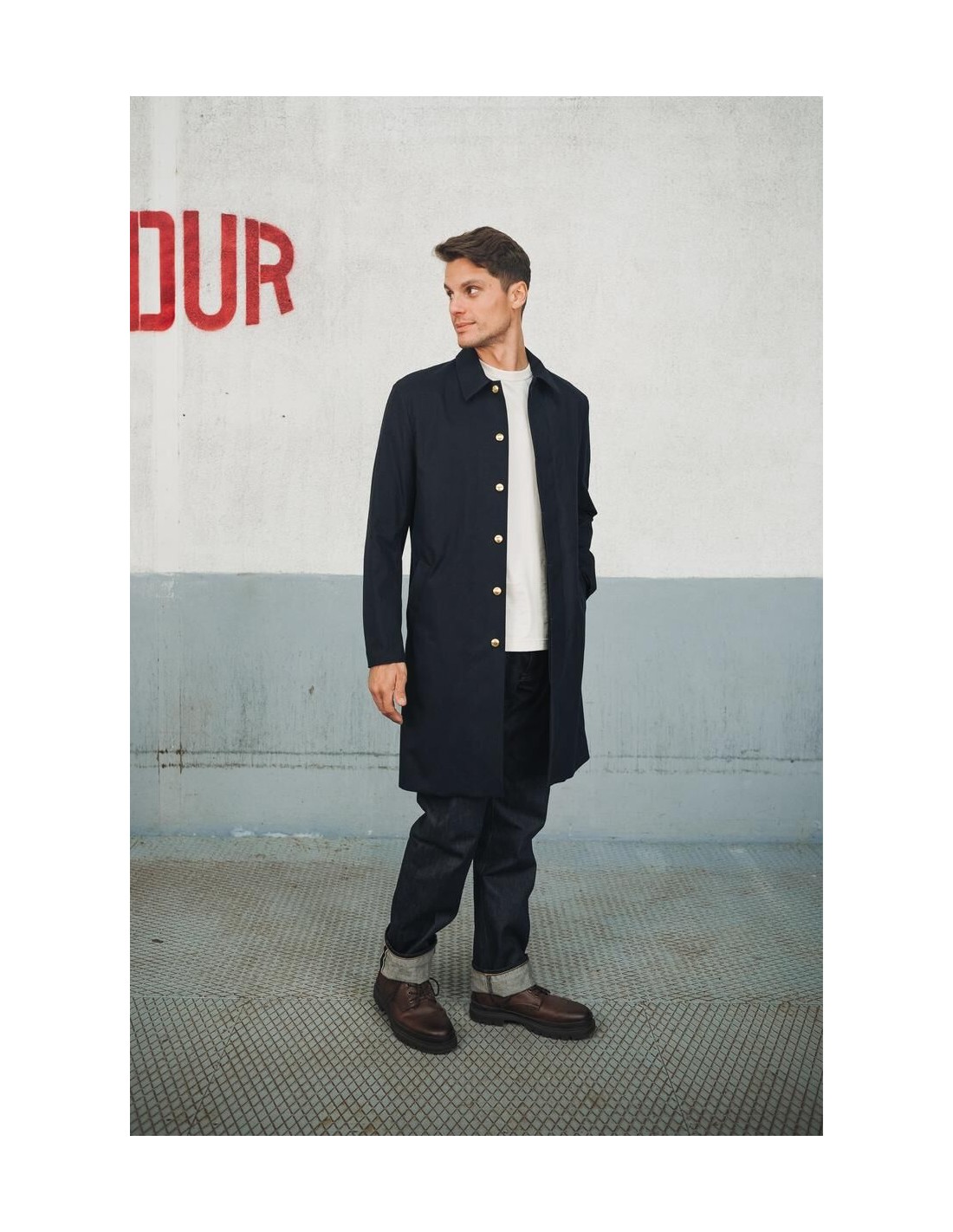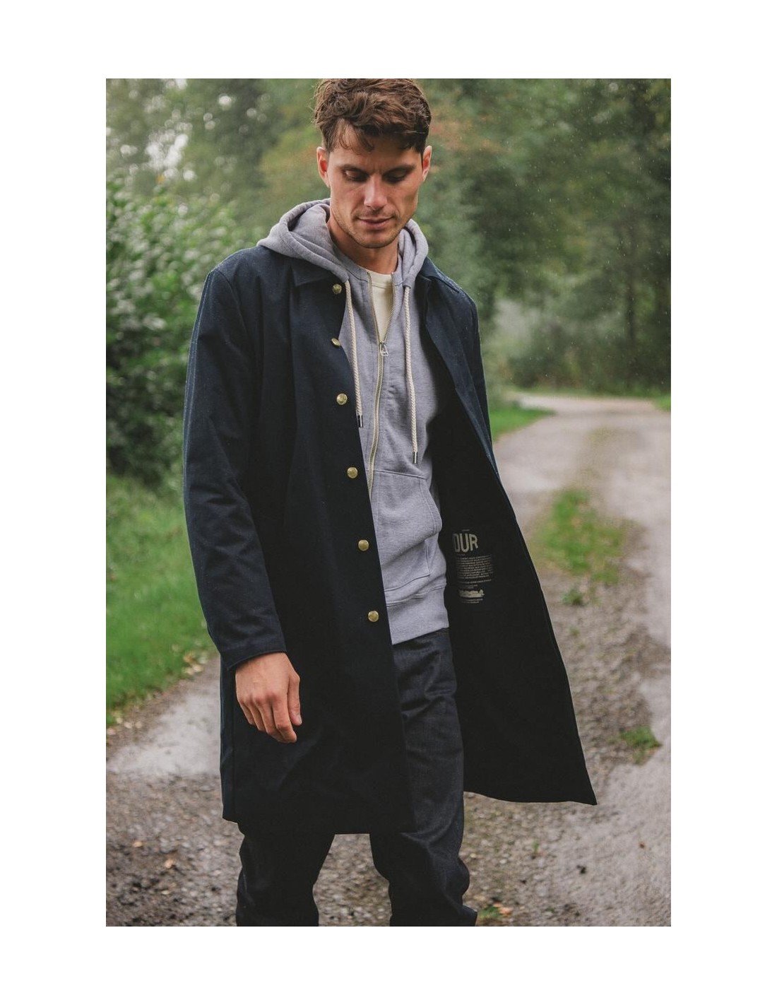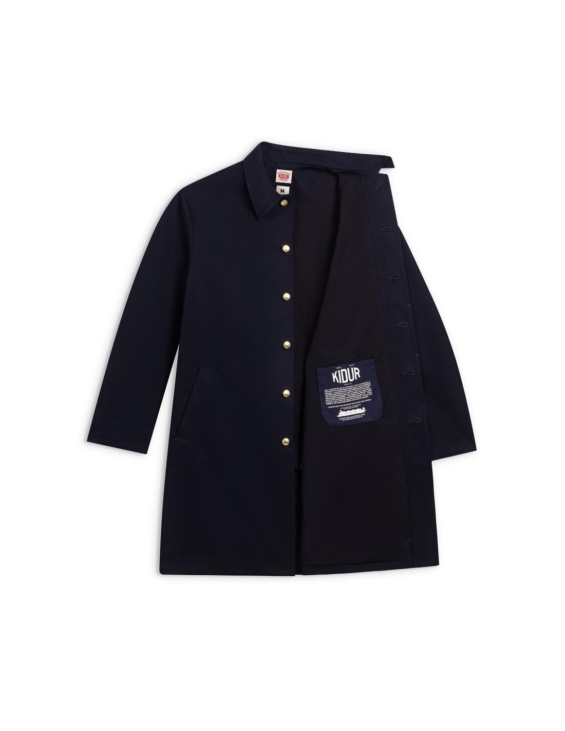 La manufacture de vêtements Kidur revisite le trench, lointain héritier du Mackintosh : le RG Marine. Il est le fruit de 5 années de recherche. Nous avons pensé le RG comme un vêtement droit, élégant et fonctionnel. Sa coupe confortable évoque les grandes heures du manteau de pluie. Il est fabriqué dans une matière recyclée, durable et déperlante du tisseur Anglais Ventile. Un vêtement de pluie fonctionnel et élégant.