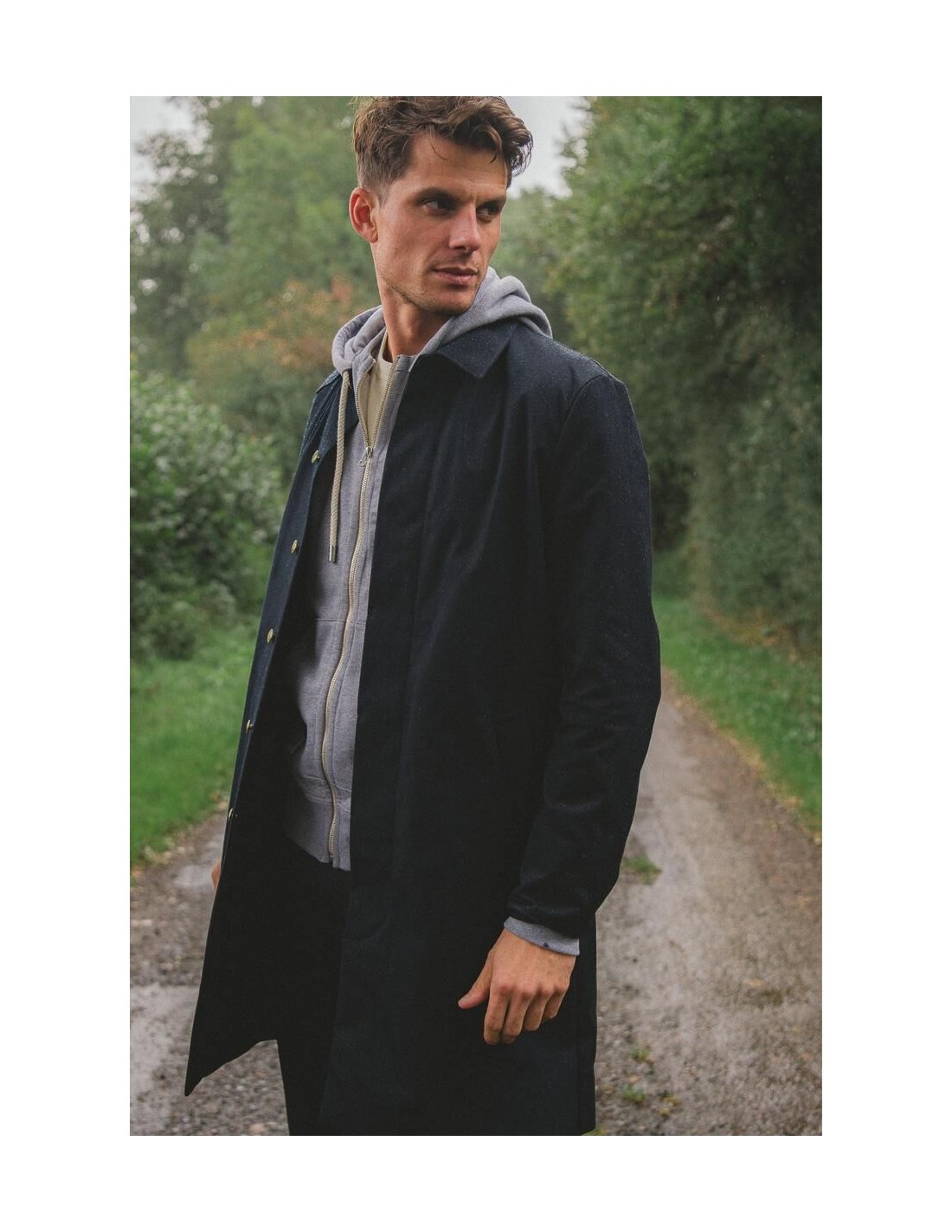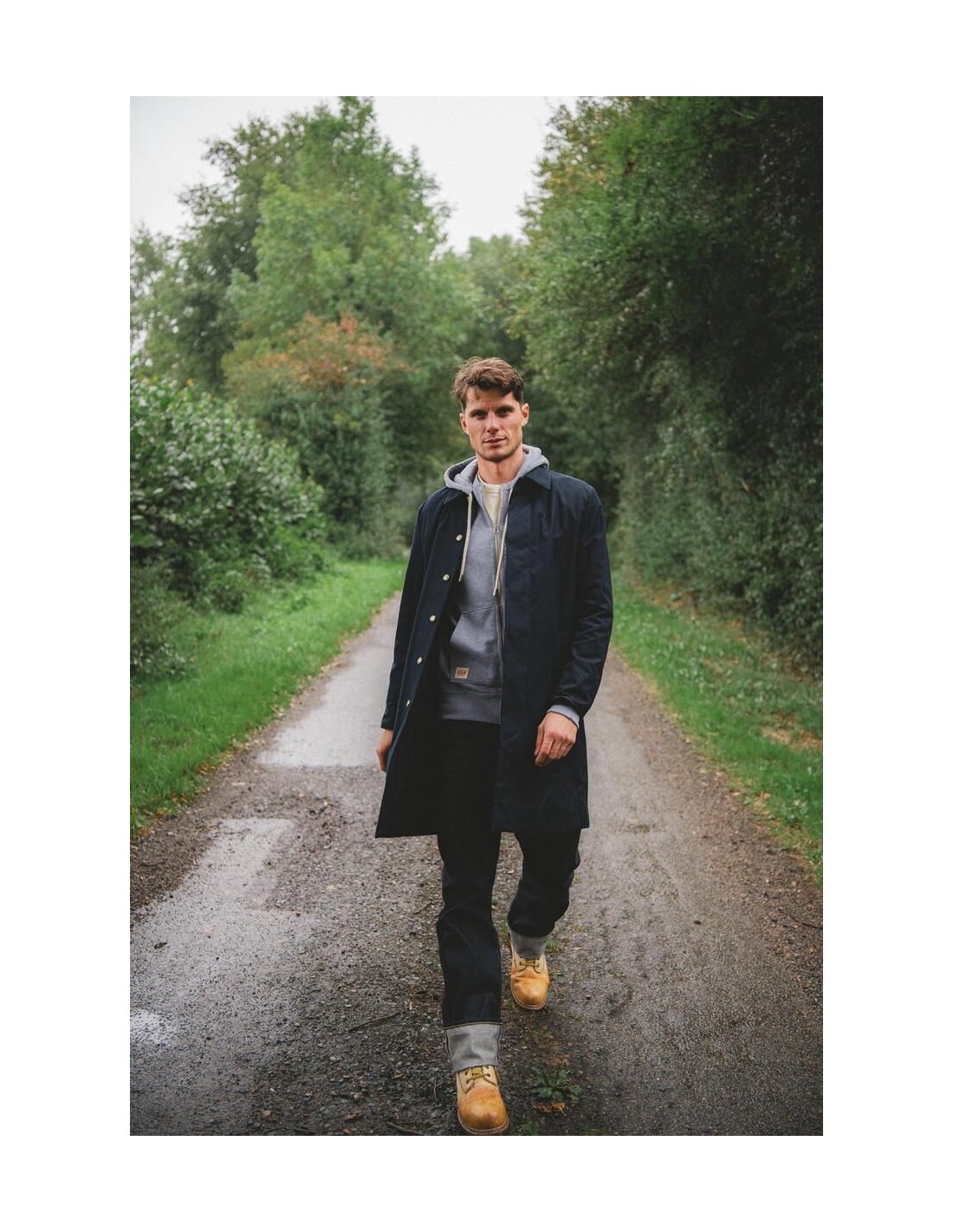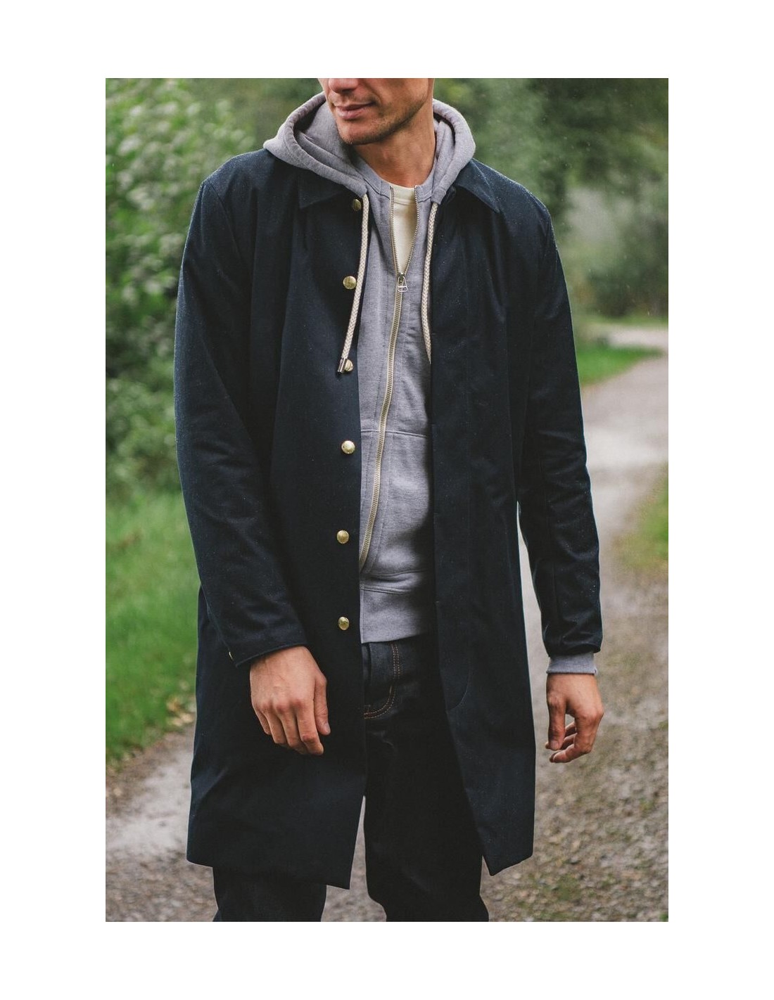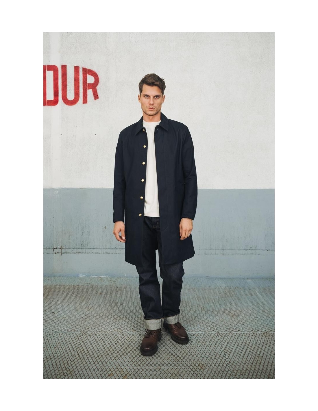 La manufacture de vêtements Kidur revisite le trench, lointain héritier du Mackintosh : le RG Marine. Il est le fruit de 5 années de recherche. Nous avons pensé le RG comme un vêtement droit, élégant et fonctionnel. Sa coupe confortable évoque les grandes heures du manteau de pluie. Il est fabriqué dans une matière recyclée, durable et déperlante du tisseur Anglais Ventile. Un vêtement de pluie fonctionnel et élégant.