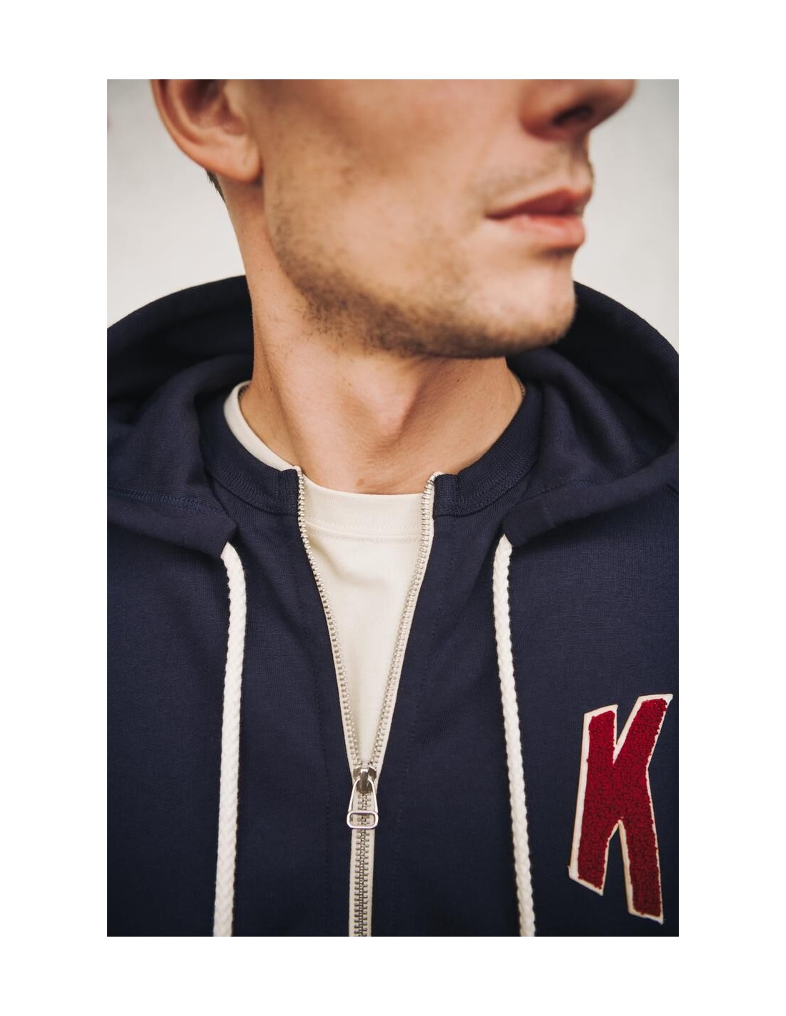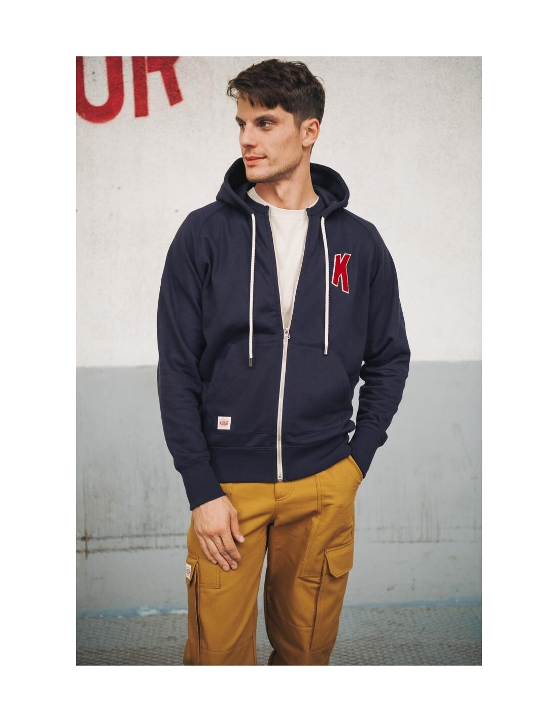 Il propose une broderie Cornely K rouge Kidur sur la poitrine gauche.